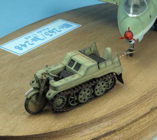 Como mejora, tuve que hacer de autoconstrucción parte de la bodega de las ruedas, la pequeña hélice del generador, el cristal blindado de la cabina, grabarle las ranuras alares paralelas al borde de ataque, además de otras cosas menores.