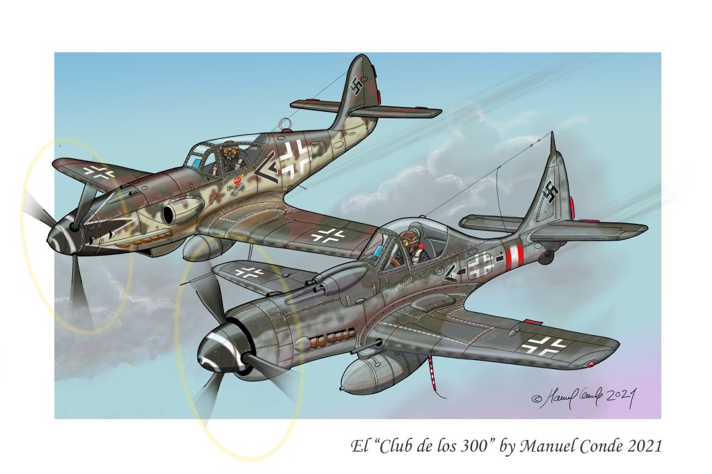 Aquí teneis mi ultimo dibujo, una caricatura de dos de los mas famosos aviones de la II Guerra Mundial. Si queréis saber quienes los pilotan y que es eso del «Club de los 300» tendréis que ver el video.