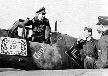 En concreto quiero hacer el avión que pilotaba en la foto, el Me 109G-6 W.Nr. 163195, el el momento de su 250ª derribo. Para ello he buscado por internet buscando fotos de este avión en particular, y es que este piloto fue también derribado en hasta 9 ocasiones, por lo que es fácil deducir que tuvo diversas monturas.