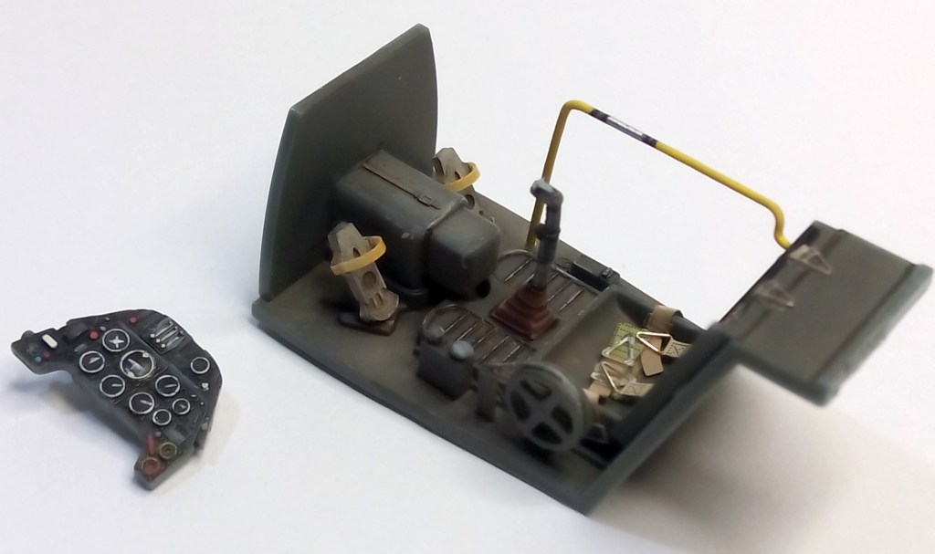 Fiel a mi estilo, excepto los cinturones de fotograbado intento no meterle nada más a la maqueta que no pueda hacer yo mismo. Los correajes de los pedales están hechos con cinta de tamiya. El panel de mandos pintado a pincel.
