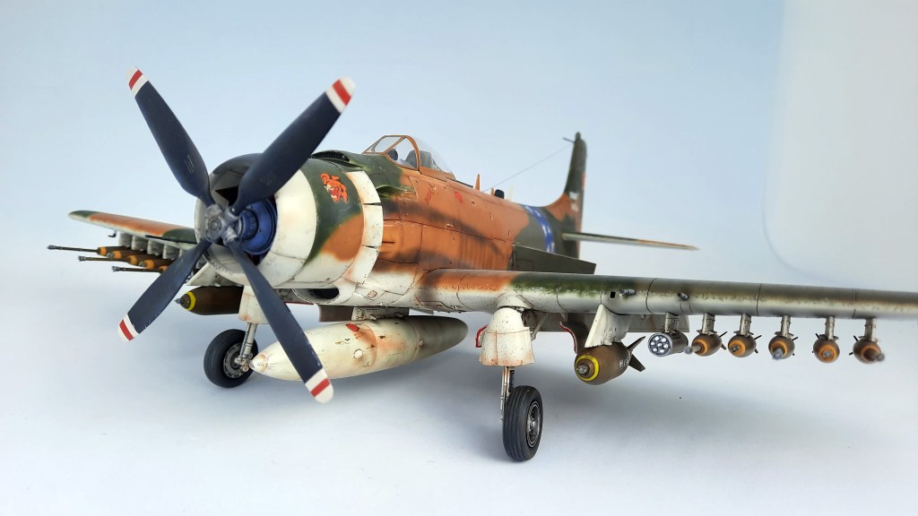 Si hay un avión emblemático de la Guerra de Vietnam, para mi ese es sin duda el Skyraider. Un avión diseñado durante la Segunda Guerra Mundial, y que se utilizó ampliamente también durante la Guerra de Corea. Para los años 60-70 ya debería haber estado totalmente desfasado, había intentado ser sustituido por otros modelos mas modernos varias veces, y sin embargo seguían siendo insustituibles.