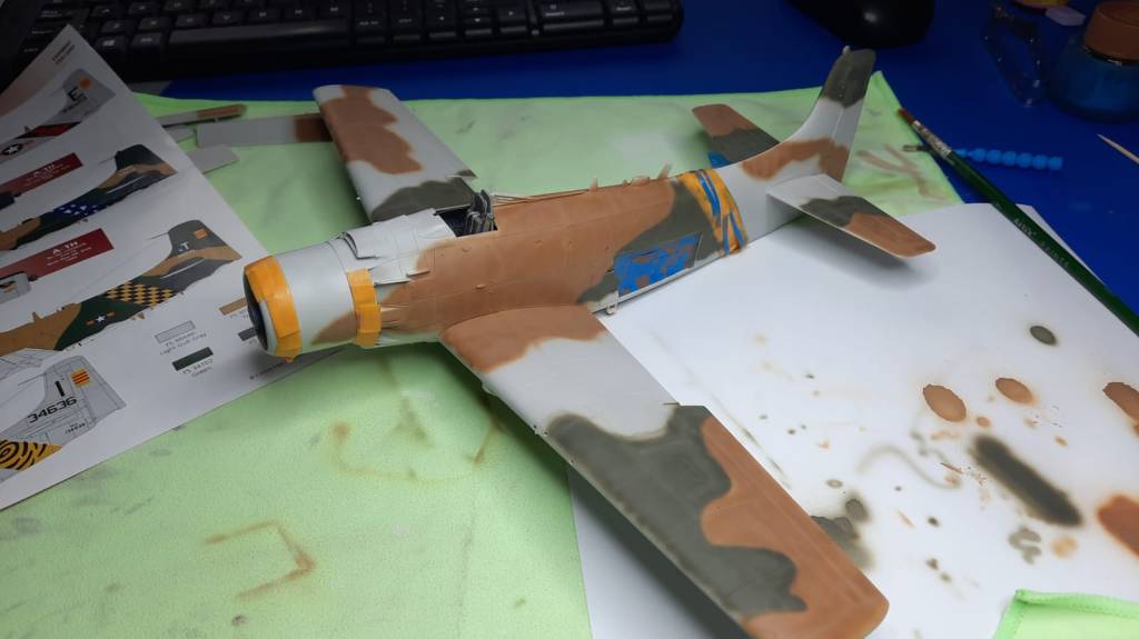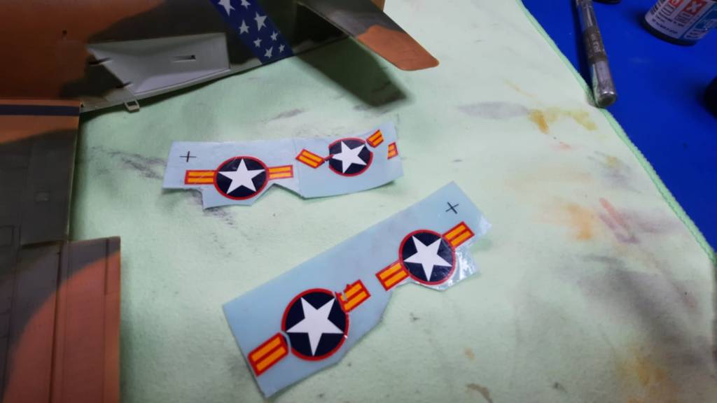 Tengo unas calcas para hacerlo vietnamita, pero lleva una banda en el fuselaje azul con estrellas que voy a pintar. Las calcas no son lo mío, y adaptar unas calcas tan grandes ni me atrevo.